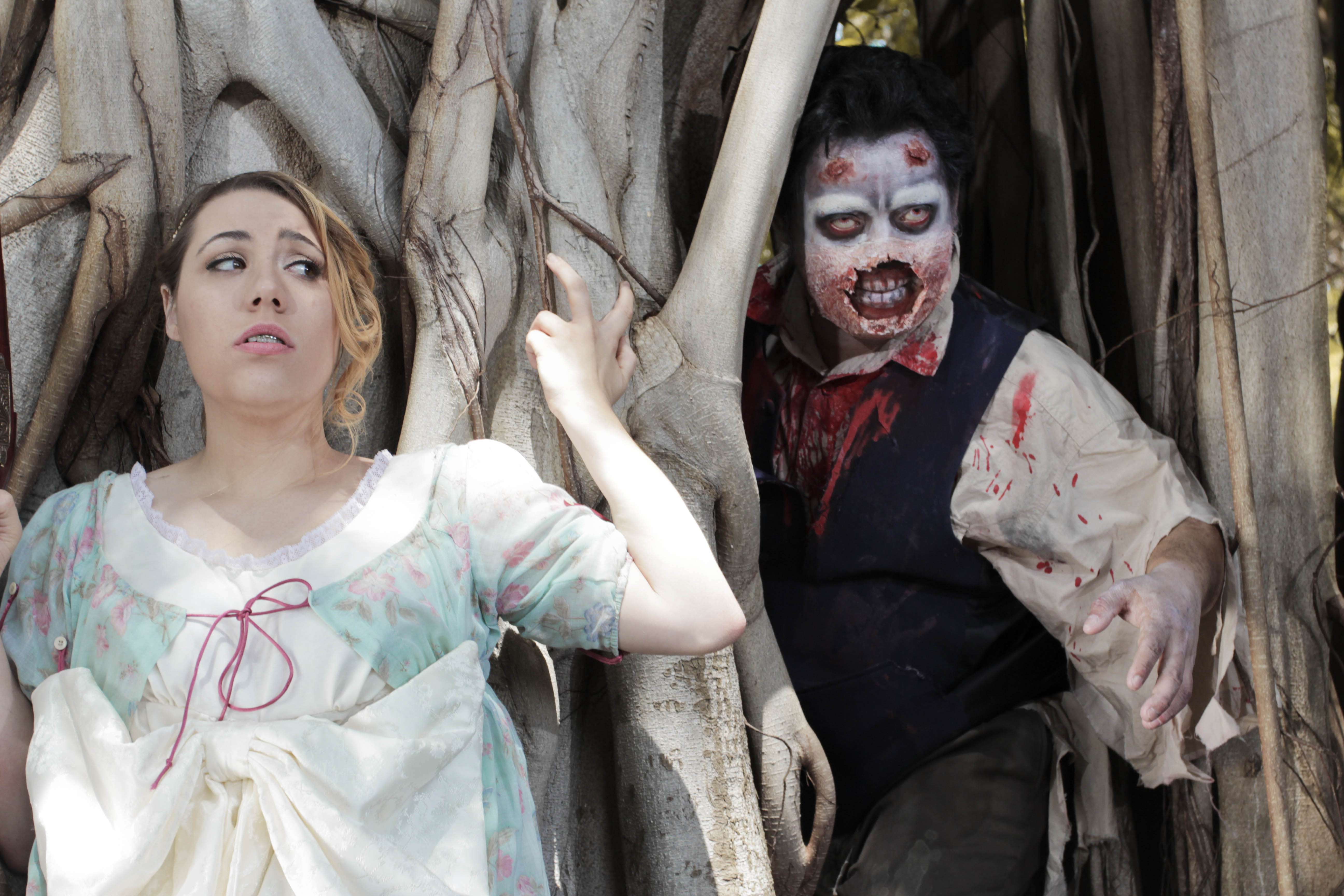 Jane Austen’s Zombie Apocalypse is the first original play produced by On The Spot Improv. Written and directed by OTS Artistic Director Garrick Paikai, “JAZA” is a response his dislike of the book Pride Prejudice and Zombies and the usage of Jane Austen’s “Free Source Characters,” However, instead of using the characters from Jane’s Novels, Garrick created original characters based on Jane’s collective character archetypes from Pride and Prejudice, Sense and Sensibility, and Emma. Garrick also took inspiration from Simon Pegg’s and Edgar Wright’s movie Shaun of the Dead. This play was originally produced in 2012 and revised in 2013.